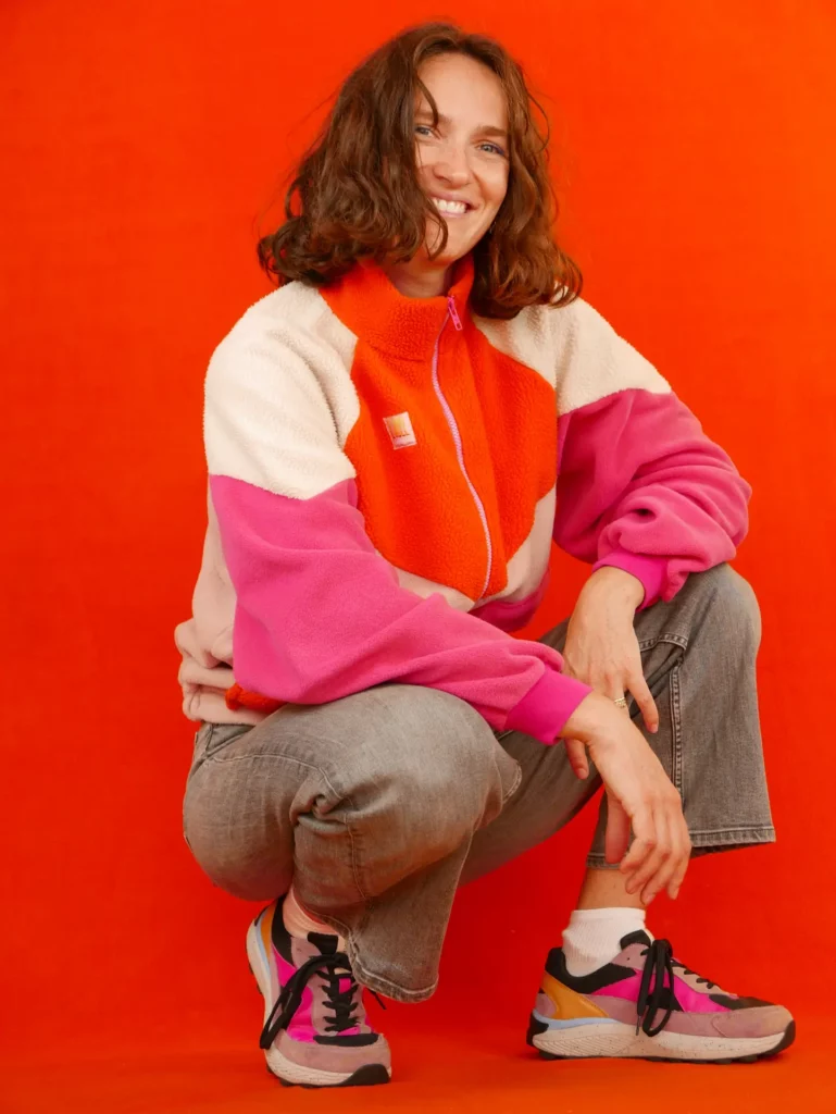 La veste polaire Mistral est zippée de haut en bas, pour que tu l’enfiles en 2 secondes, composée de deux tissus polaires différents pour apporter des textures variées et enjoliver le tout, dans des matières toutes douces et toujours bien chaudes !