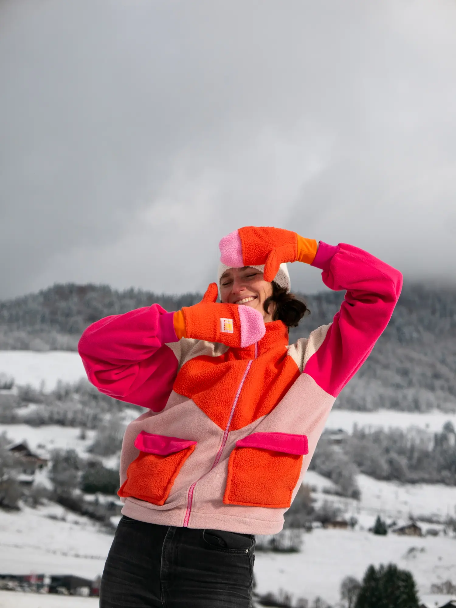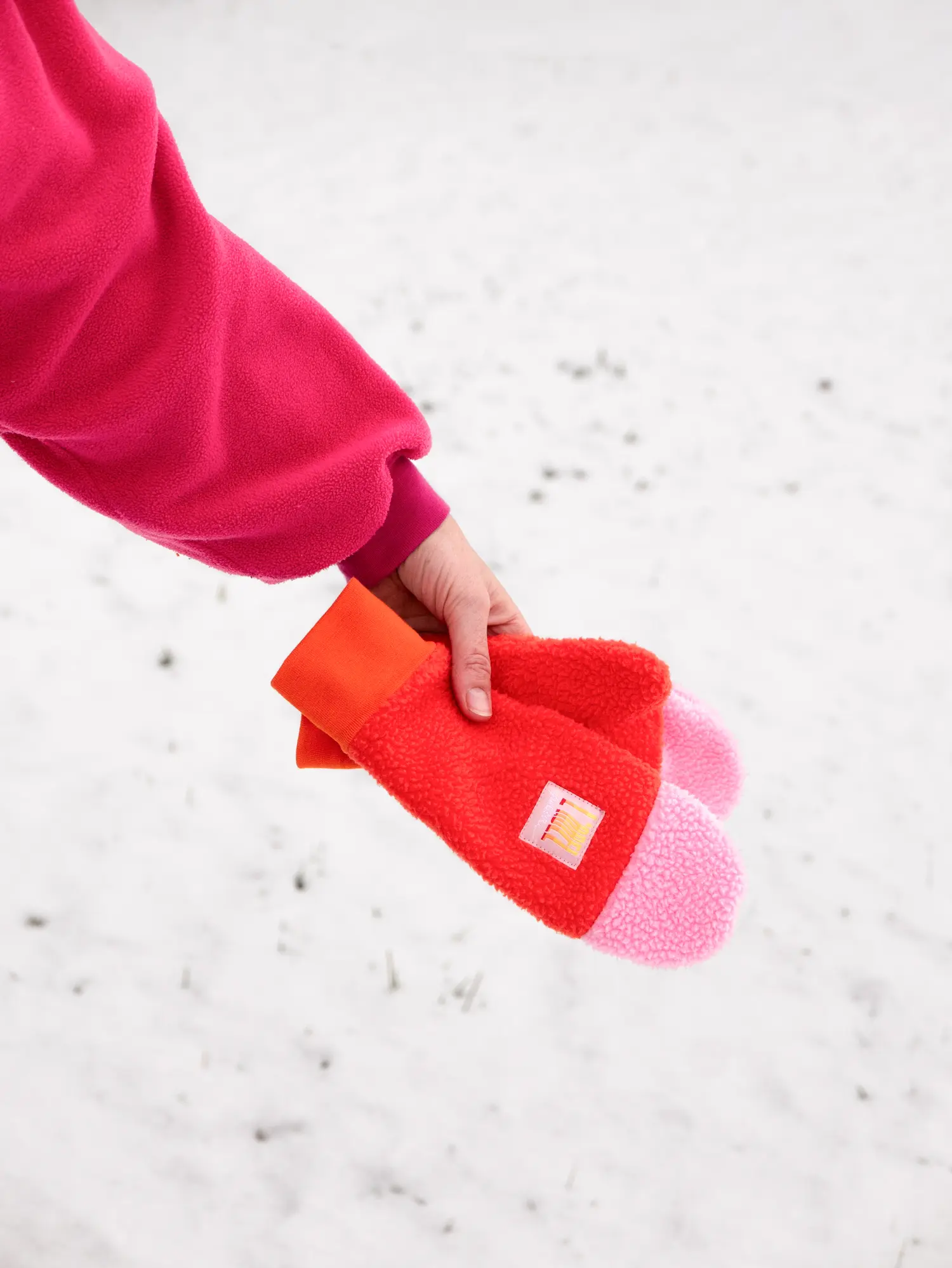 Moufles Sherpa Recyclé Orange et Rose